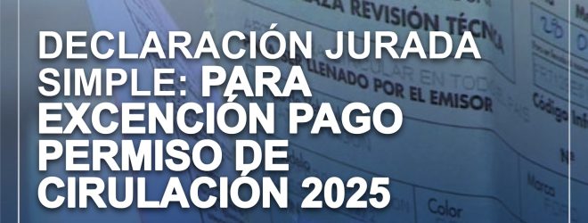 📄 DECLARACIÓN JURADA SIMPLE: EXENCIÓN PERMISO DE CIRCULACIÓN 2025 ¡Ya quedan pocos días para aprovechar el beneficio de exención del permiso de circulación 2025! 🚗💡 (Art. 16, Ley 3.063, Rentas Municipales).Si tu vehículo está en panne, puedes presentar una declaración jurada simple antes del 30 de noviembre en la Oficina de Tránsito de la Municipalidad. […]