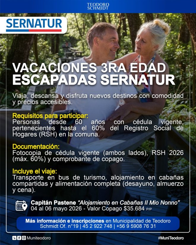 #MuniTeodoro #TeodoroSchmidt #VacacionesTerceraEdad #SERNATUR #AdultosMayores #TurismoSocial