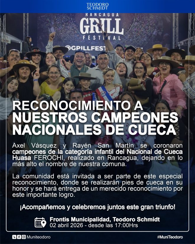 La comunidad está invitada a ser parte de este especial reconocimiento, donde se realizarán pies de cueca en su honor 💃🕺 y se hará entrega de un merecido reconocimiento por este importante logro 🏆