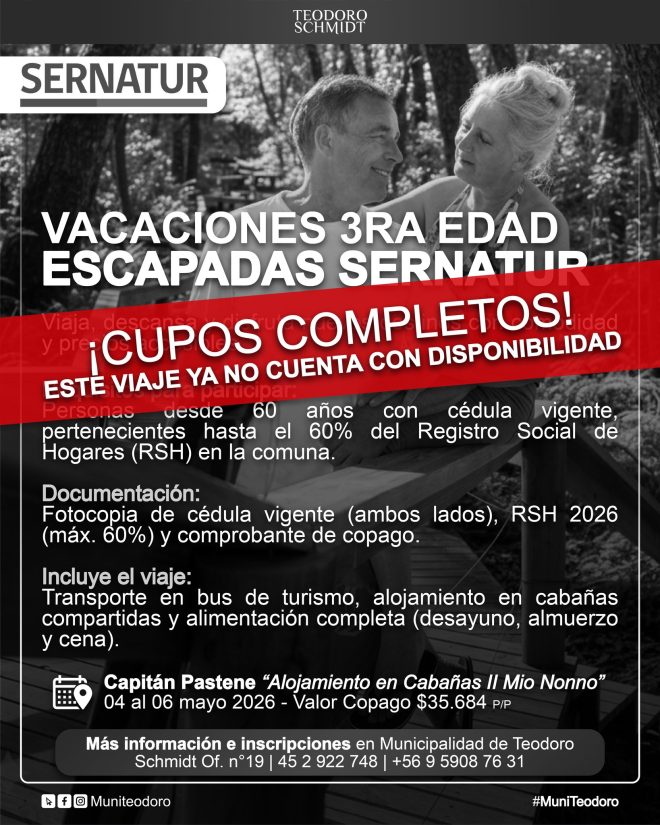 #MuniTeodoro #TeodoroSchmidt #VacacionesTerceraEdad #SERNATUR